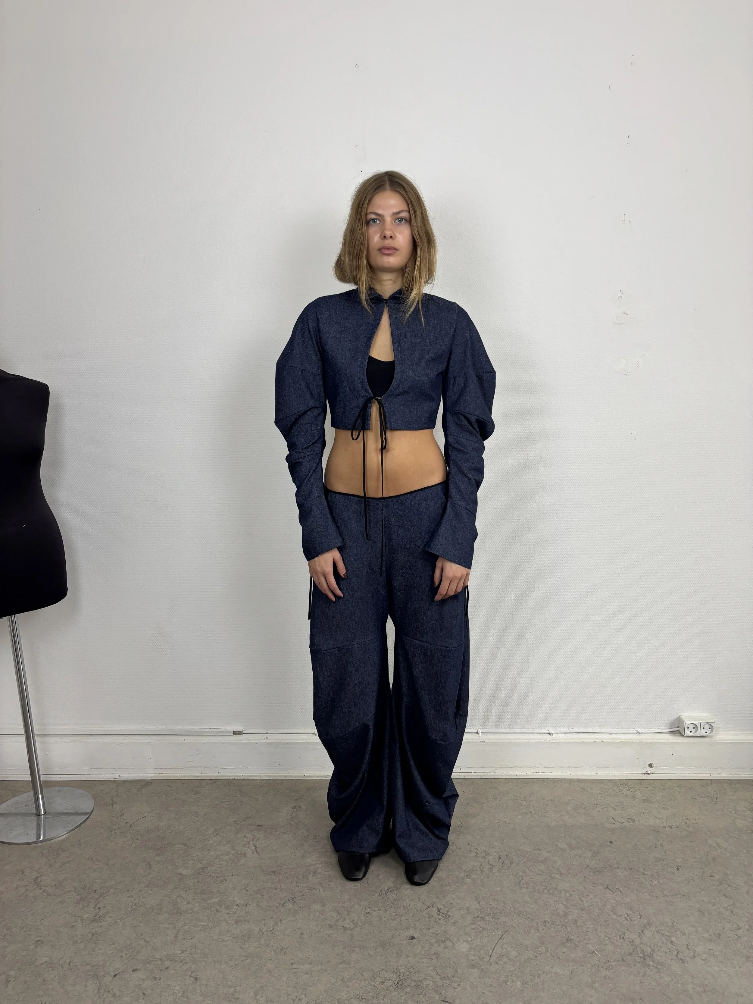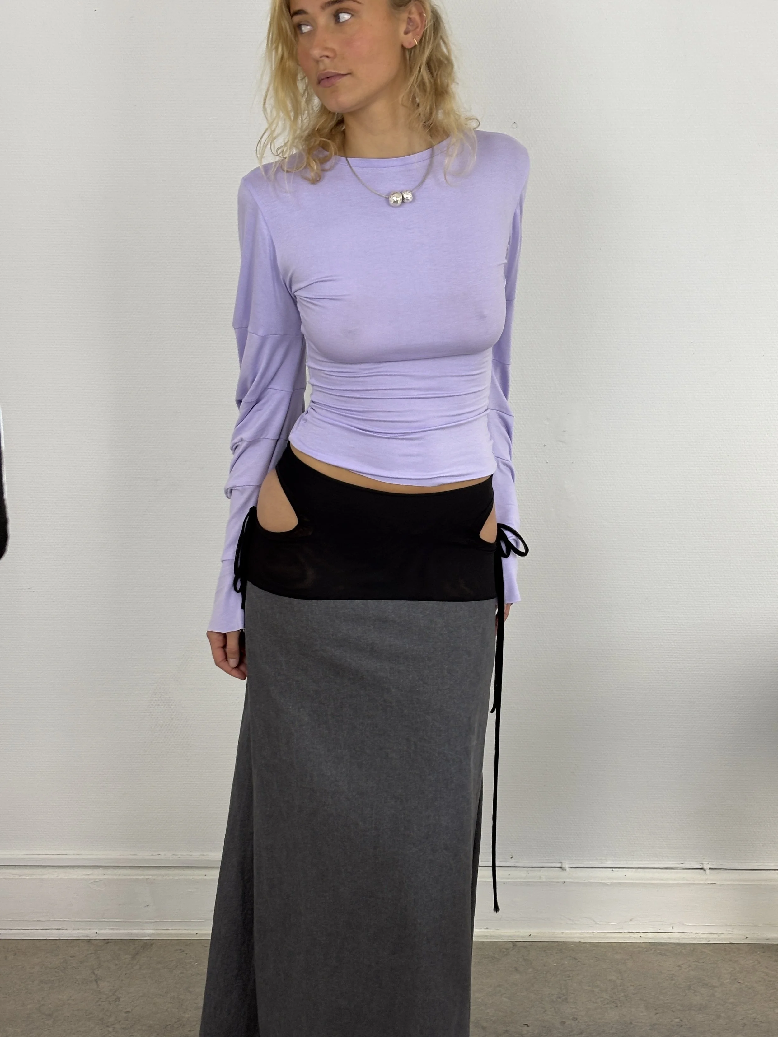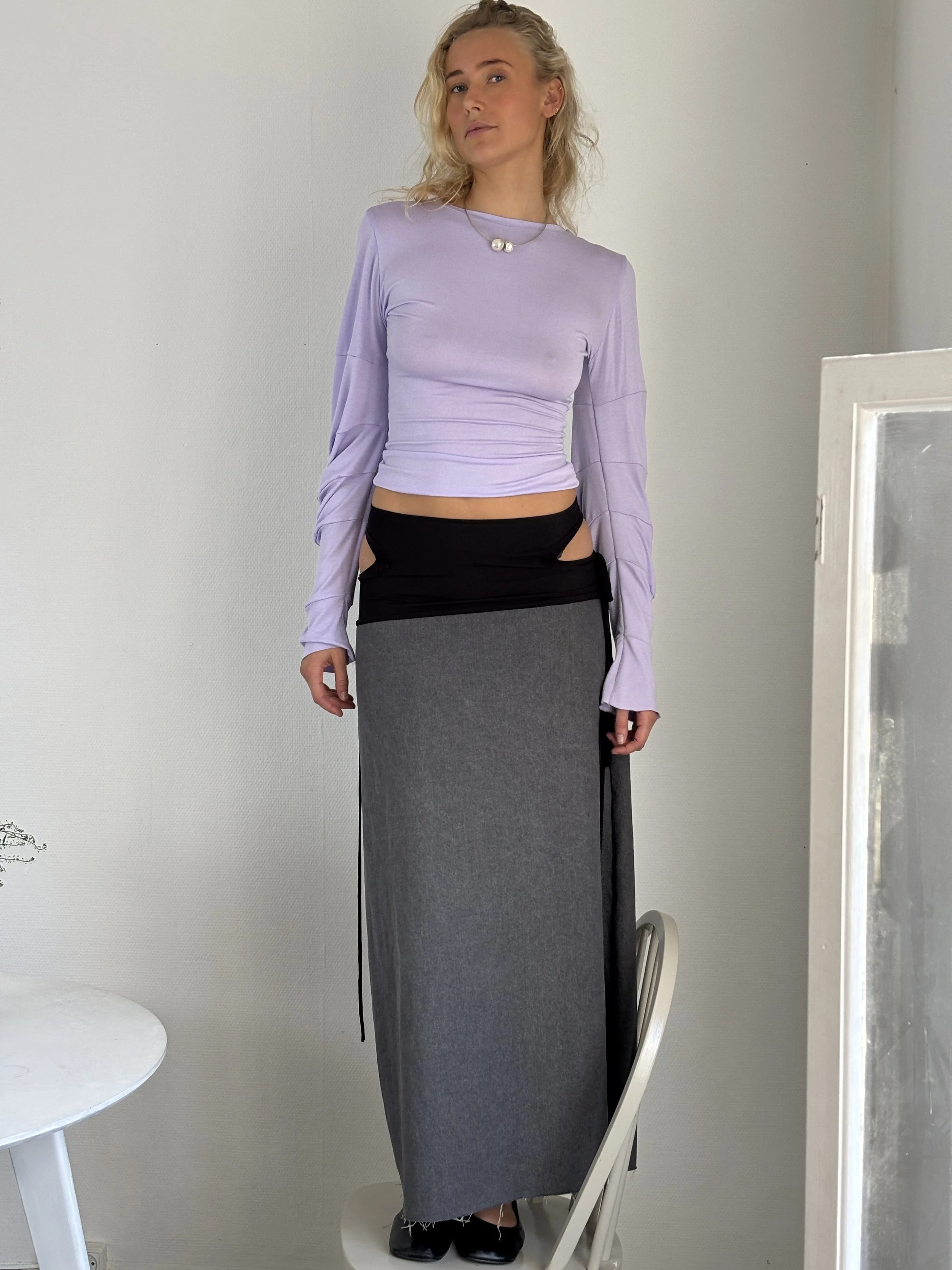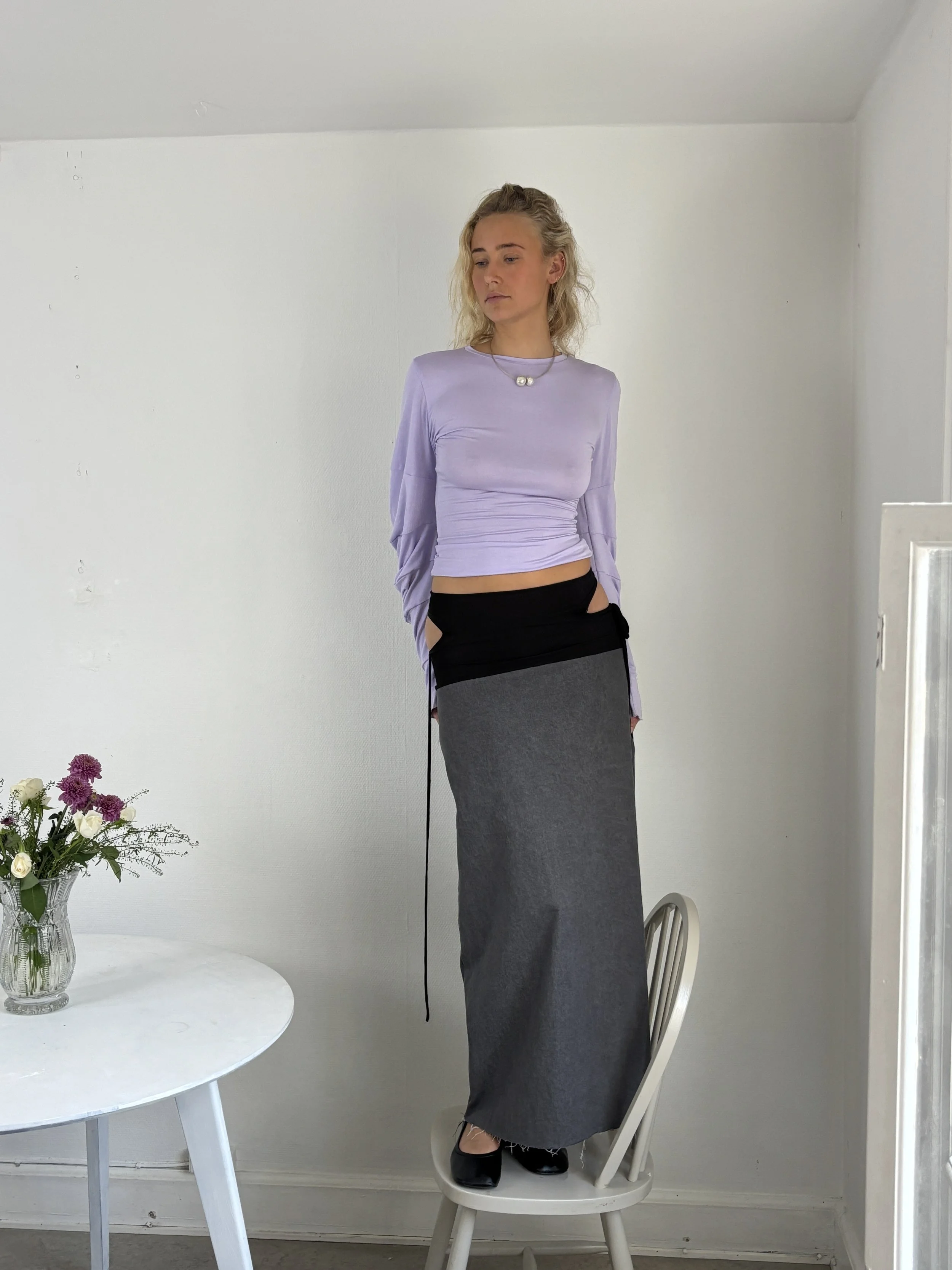 Loose fitted wrap top with side opening, wide long arms & long ties