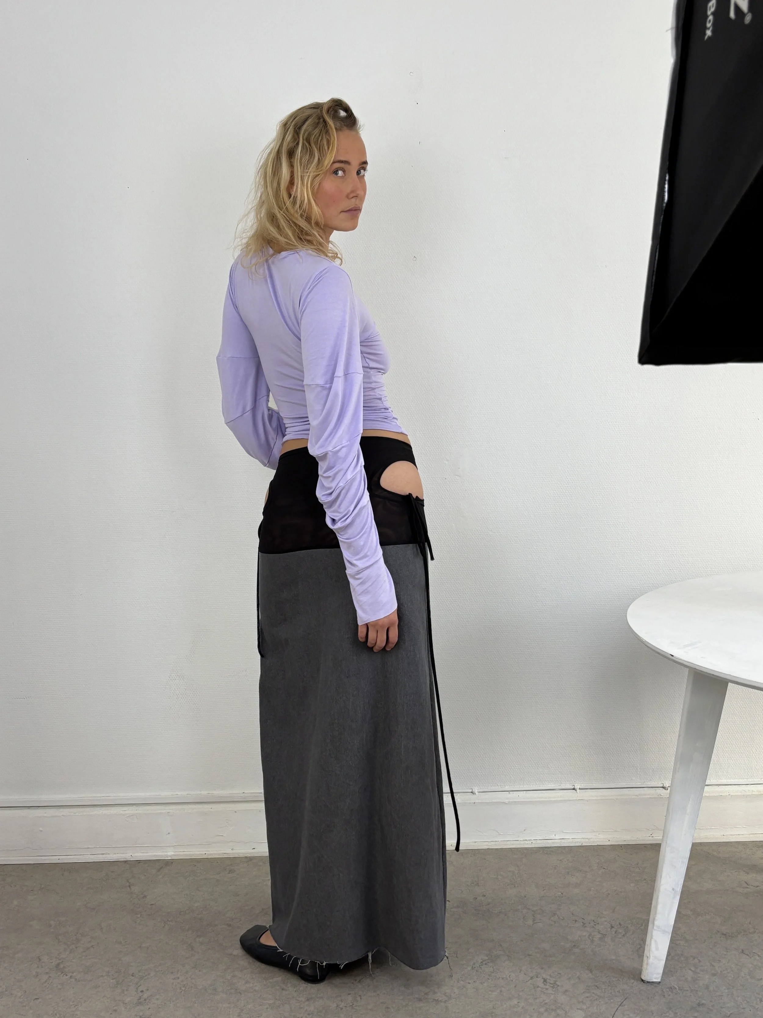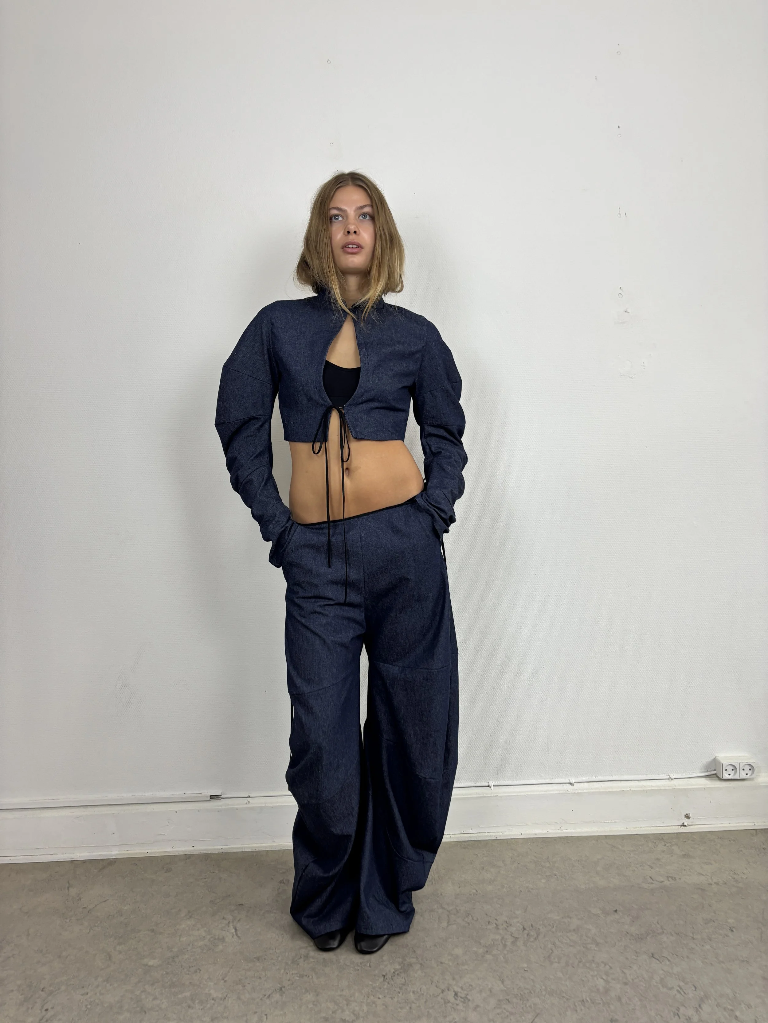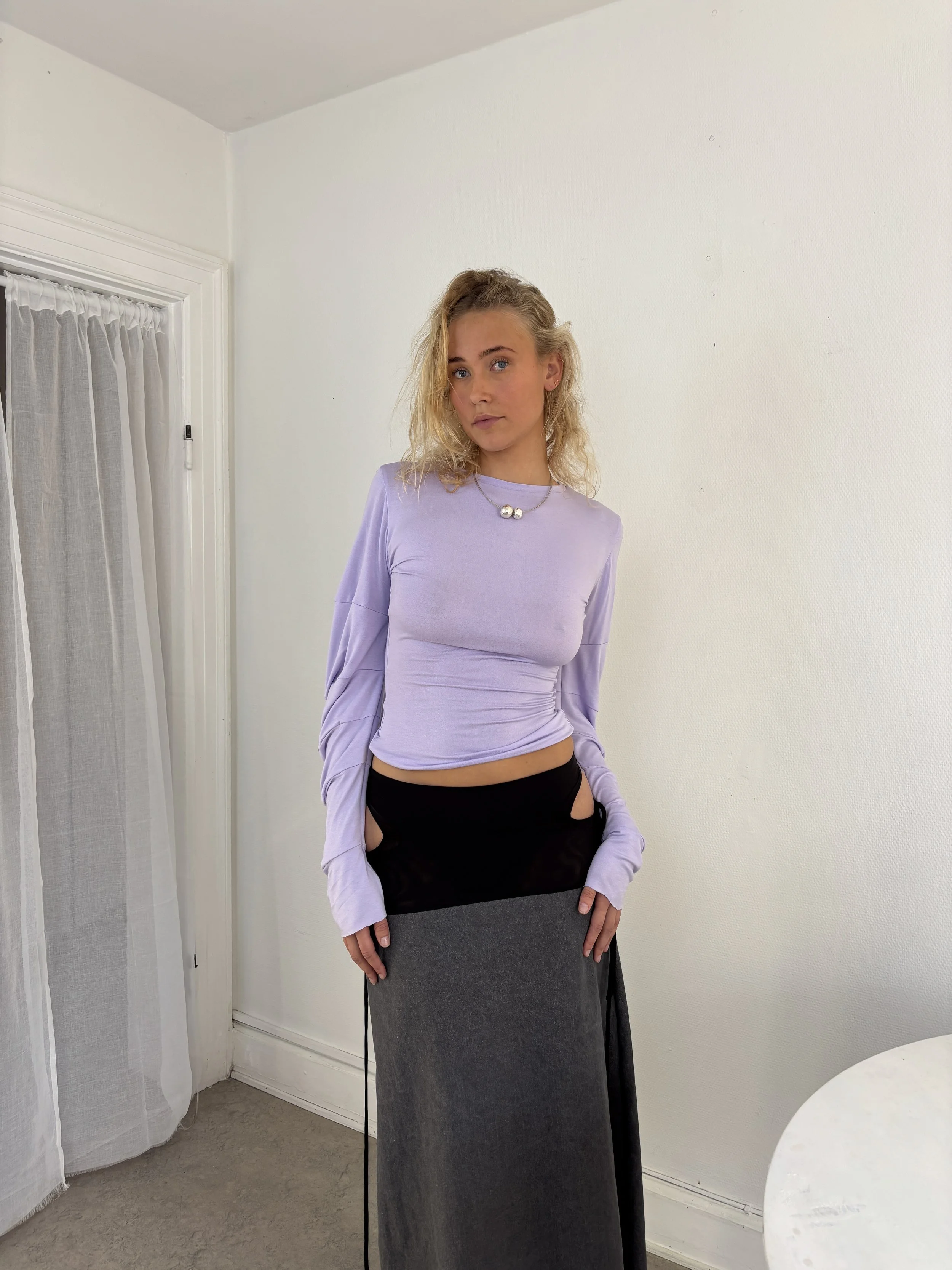 Loose fitted wrap top with side opening, wide long arms & long ties