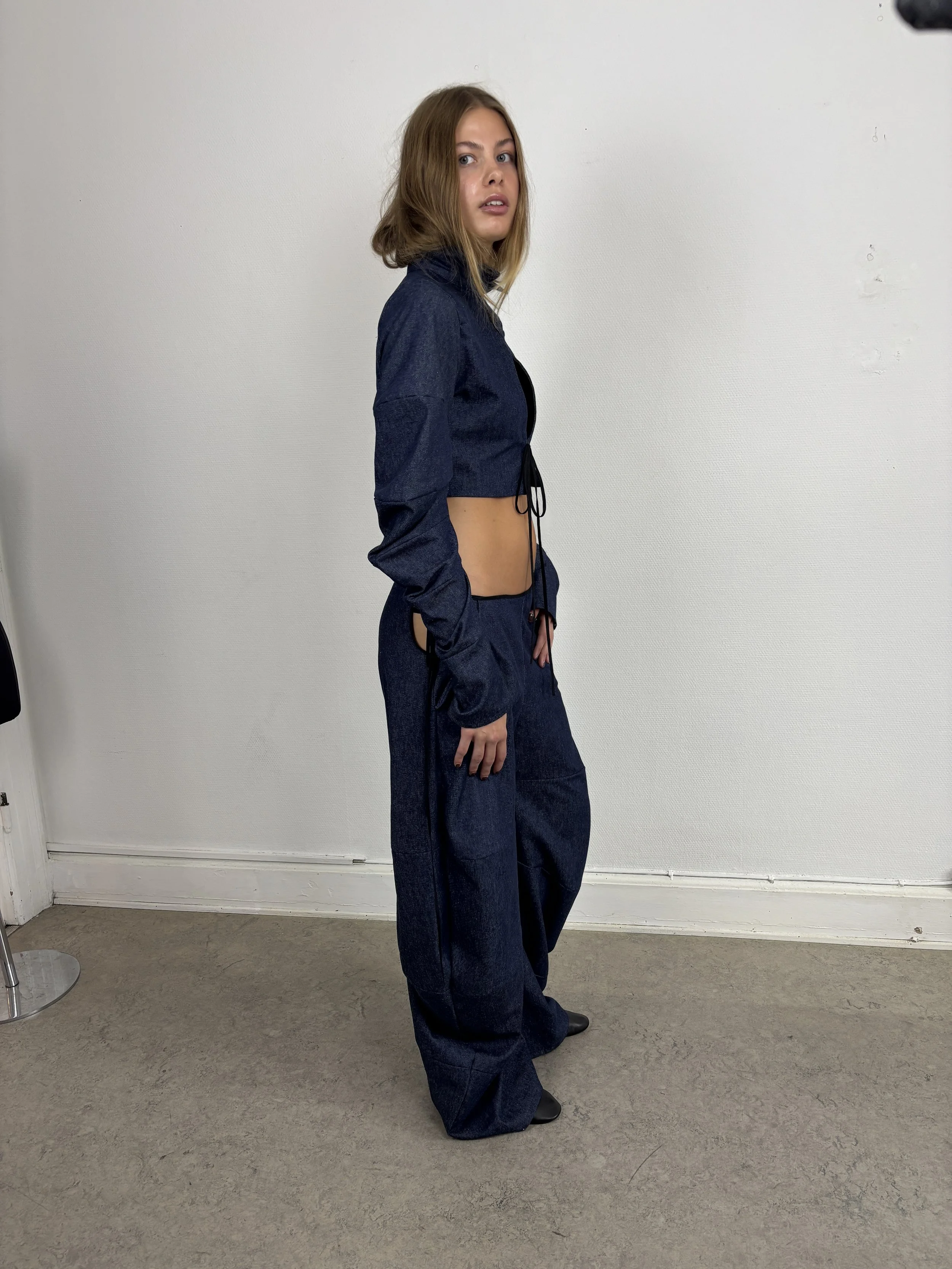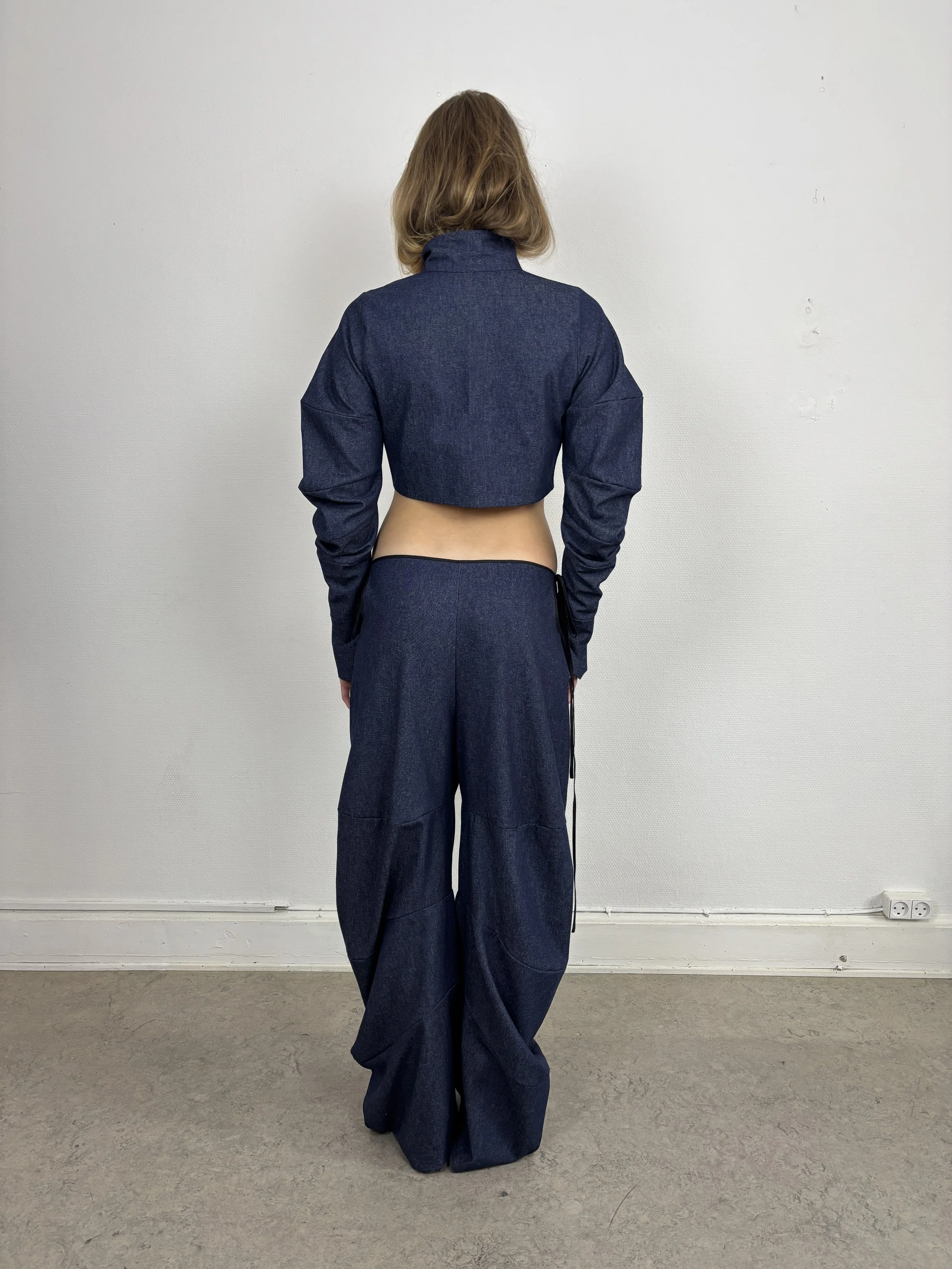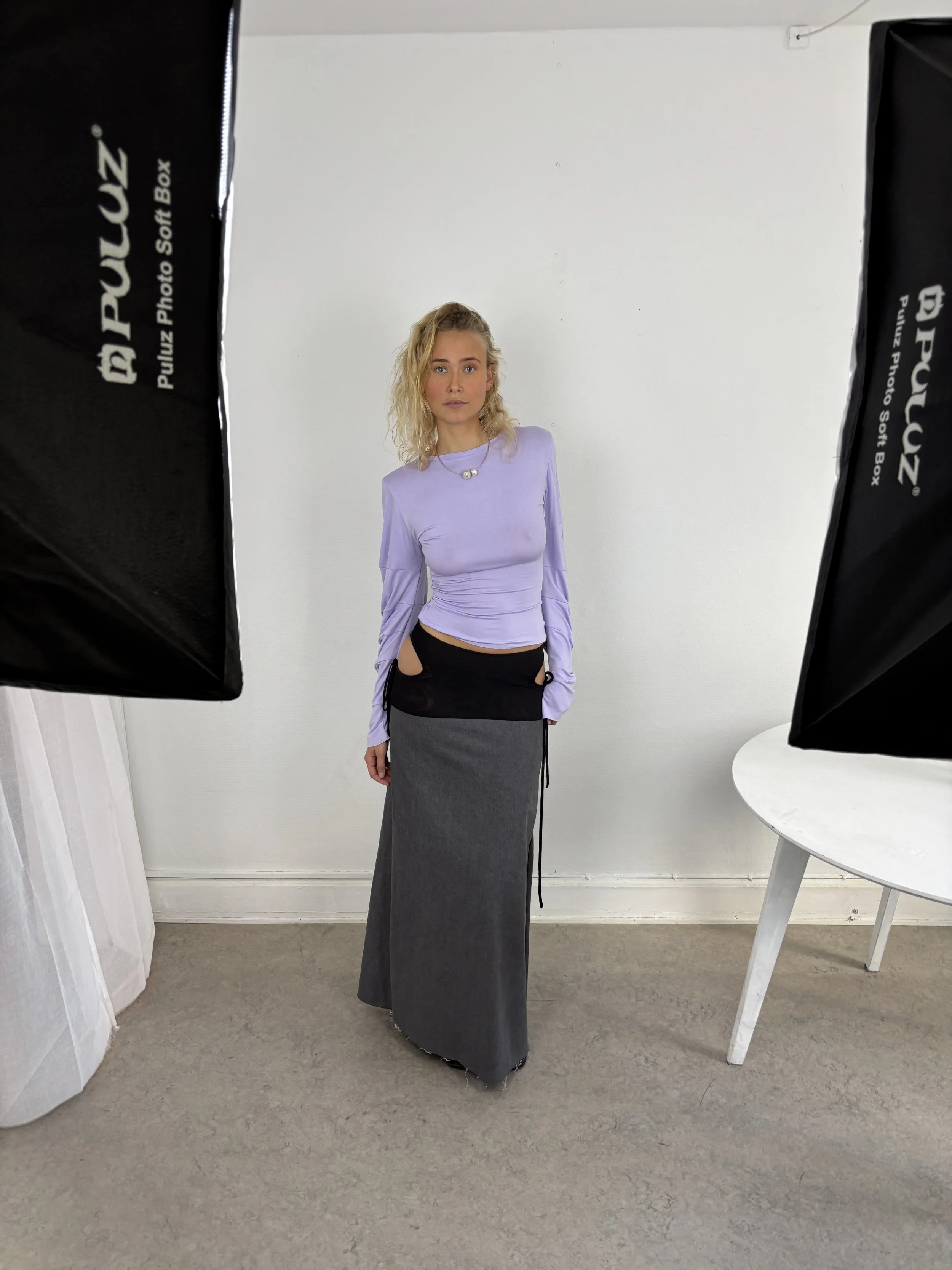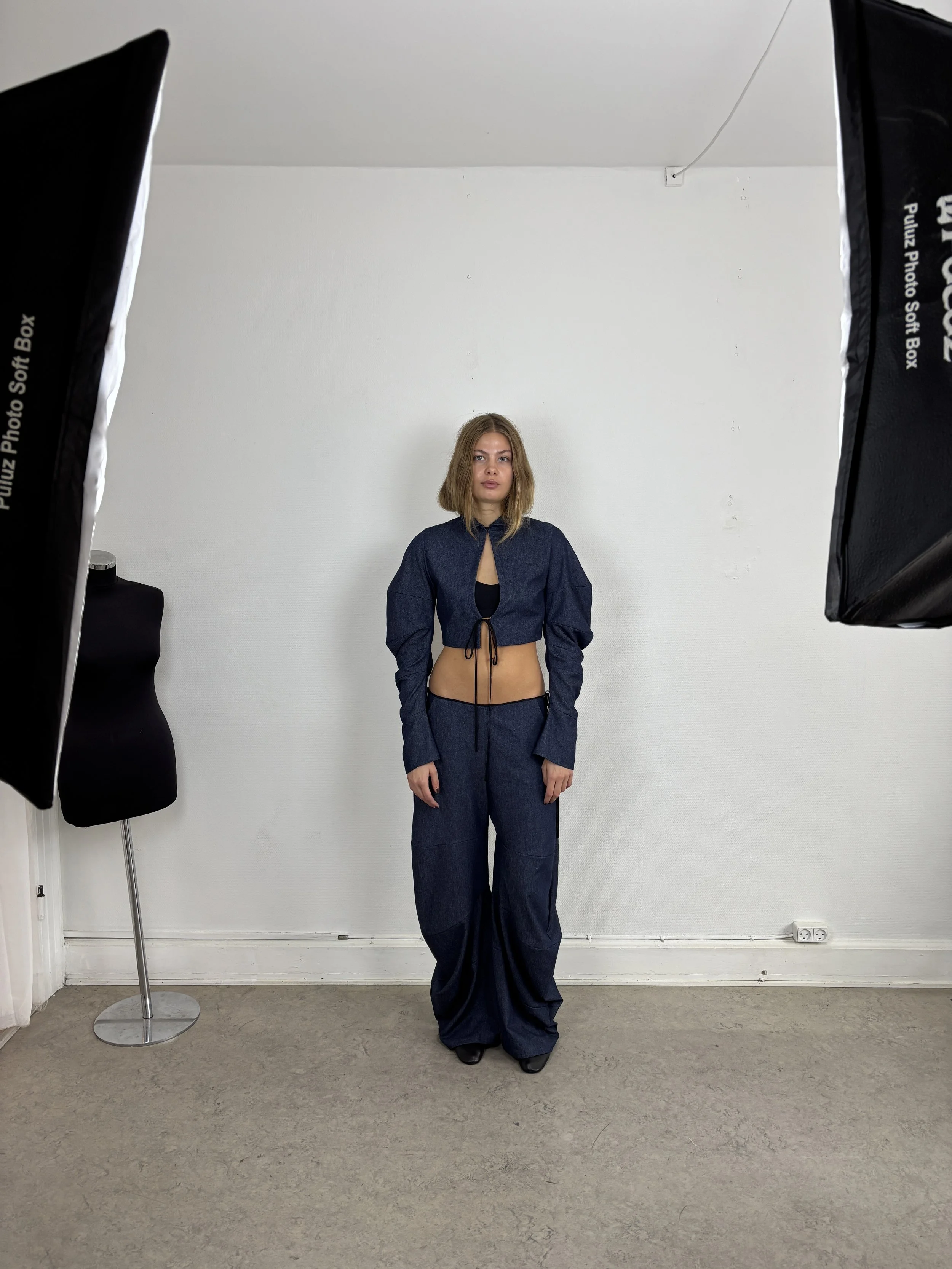 Loose fitted wrap top with side opening, wide long arms & long ties