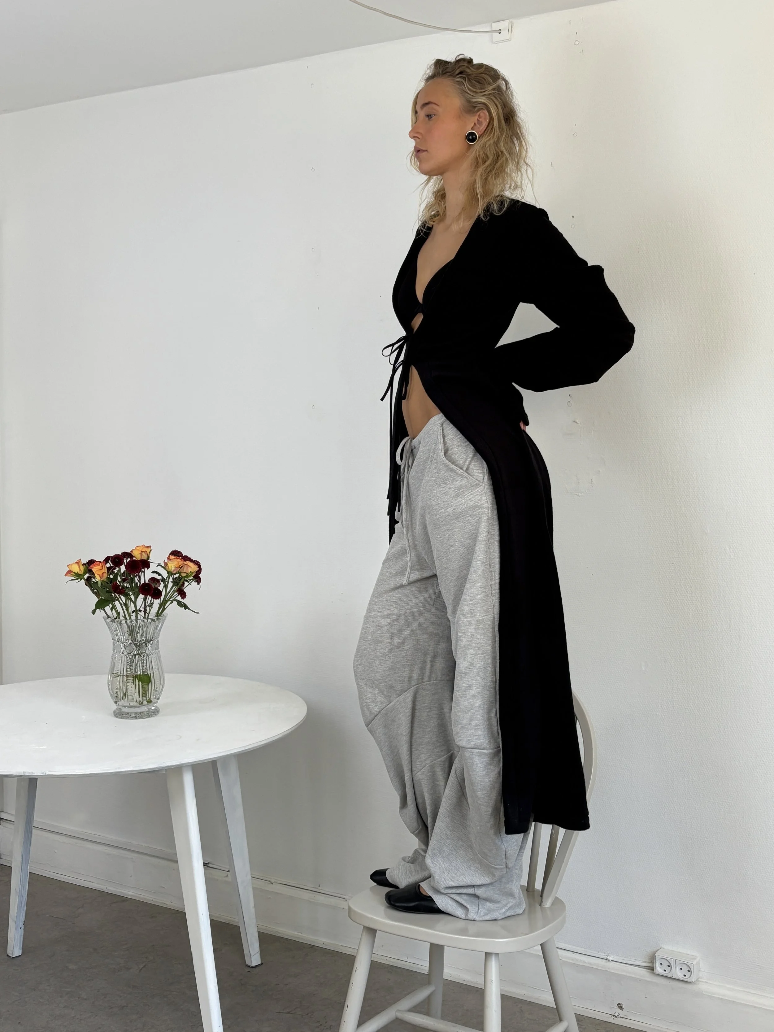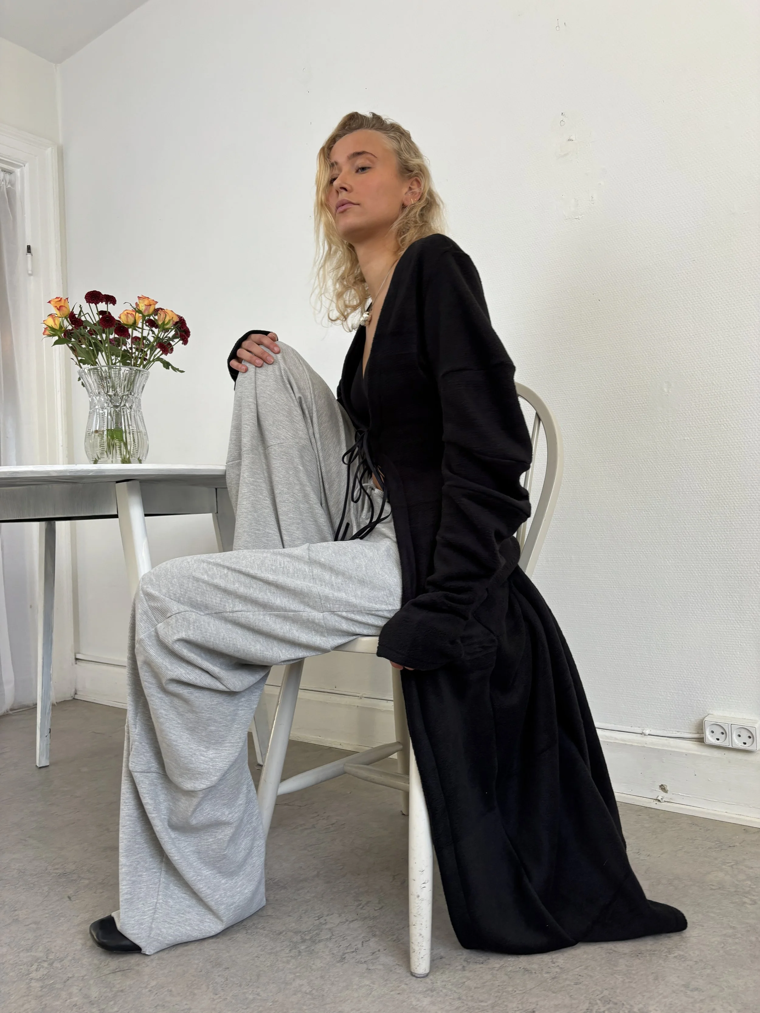 Loose fitted wrap top with side opening & long ties